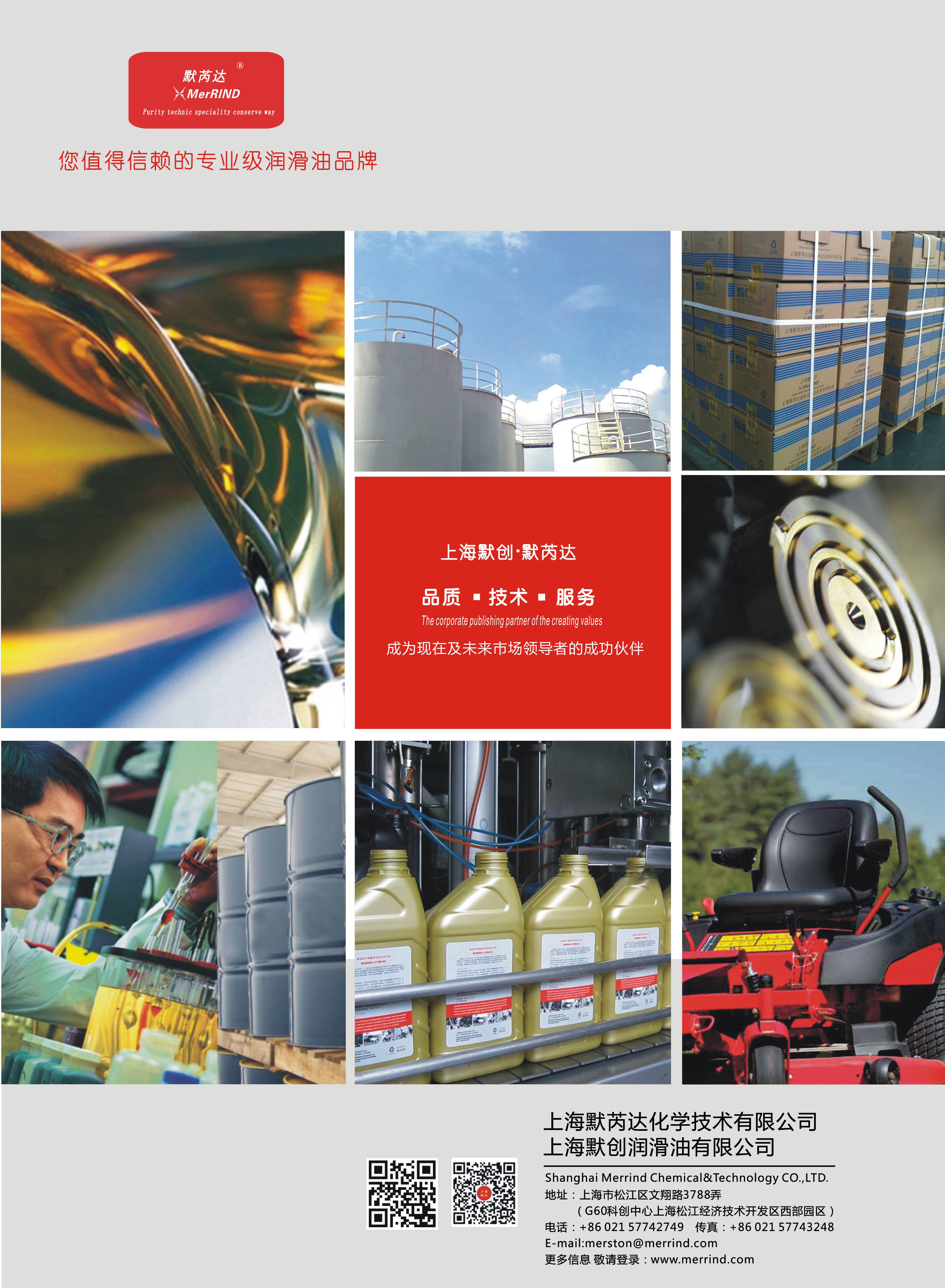 延伸阅读:默芮达®品牌始建于2008年,默芮达化学技术长期致力于国内高端细分润滑市场领域。我们凭借在行业中积累的经验和专业技能,以及创新产品与技术来帮助我们的合作伙伴提升其在市场中的竞争力。企业经过长期不懈努力与坚持,已经为国内诸多企业提供精益、绿色、高质量的专业级默芮达润滑产品与化学产品。诸如东方精工集团、华域车身、农夫山泉、钢诺股份、长城汽车、奥克化学股份、欧玮机械、新常泰汽车零部件、海泰科特精密材料、奥迈机器人、龙工、宇森百联、爱仕达自动化、泰利制造、万鸿汽车零部件、京瓷利优比、爱驰新能源、康克莱自动化等行业知名企业。